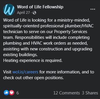 So absolutely yes, a ministry could look exactly like a secular business. There are probably Christians who do HVAC repair for a living who call their business a ministry. At least, there’s a church out there (archive) that was recently hoping to find one: