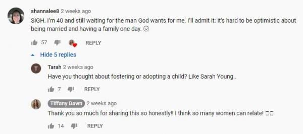 The YouTuber here, Tiffany Dawn, is a middle-aged woman who’s been married just a few years. Her testimony sounds like pure evangelicalism. To be sure, she uses all the jargon I’d expect out of that tribe. Her biography page is shockingly lacking in self-awareness and mostly reveals how very useless Christianity is to its believers. Case in point: her super-duper-Jesus-a-riffic faith didn’t help her at all with an eating disorder, seriously-low self-esteem, or a very long-term relationship with a man who sounds emotionally abusive.