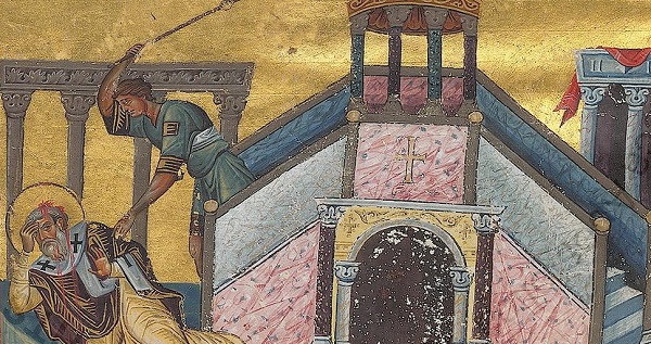 The Martyrdom of James the Just. (Wikipedia.) From Menologion of Basil II, a manuscript from the late 10th-early 11th century. Wait, that’s not how Josephus described him dying!