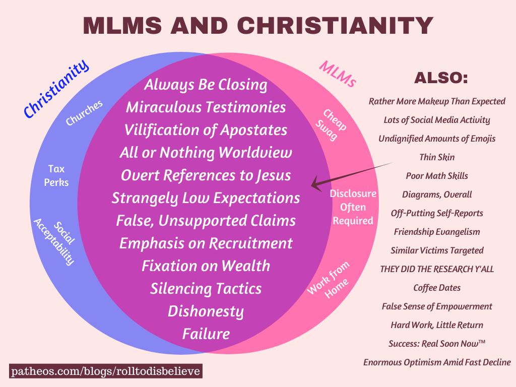 The Venn diagram comparing sales-minded Christians to multi-level marketing schemes grows ever closer to a full circle.